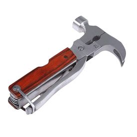 OFIXO Portable Stainless Steel Construction Wood Inlay Handle Multitool Axe Outdoor Camping Hammer Hatchet Tool Hand Tools